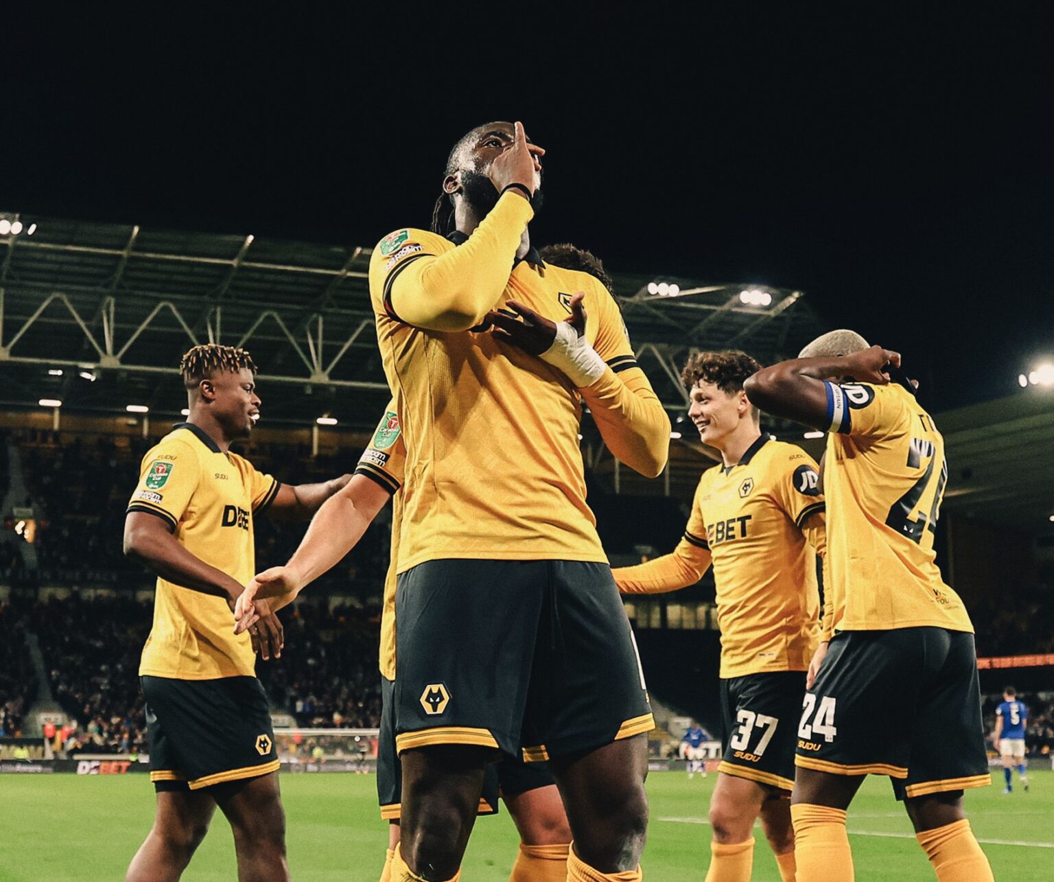 Super Eagles striker Tolu Arokodare scored his first goal for Wolverhampton Wanderers, in their 2-0 win against Everton in the third round of the Carabao Cup on Tuesday night.